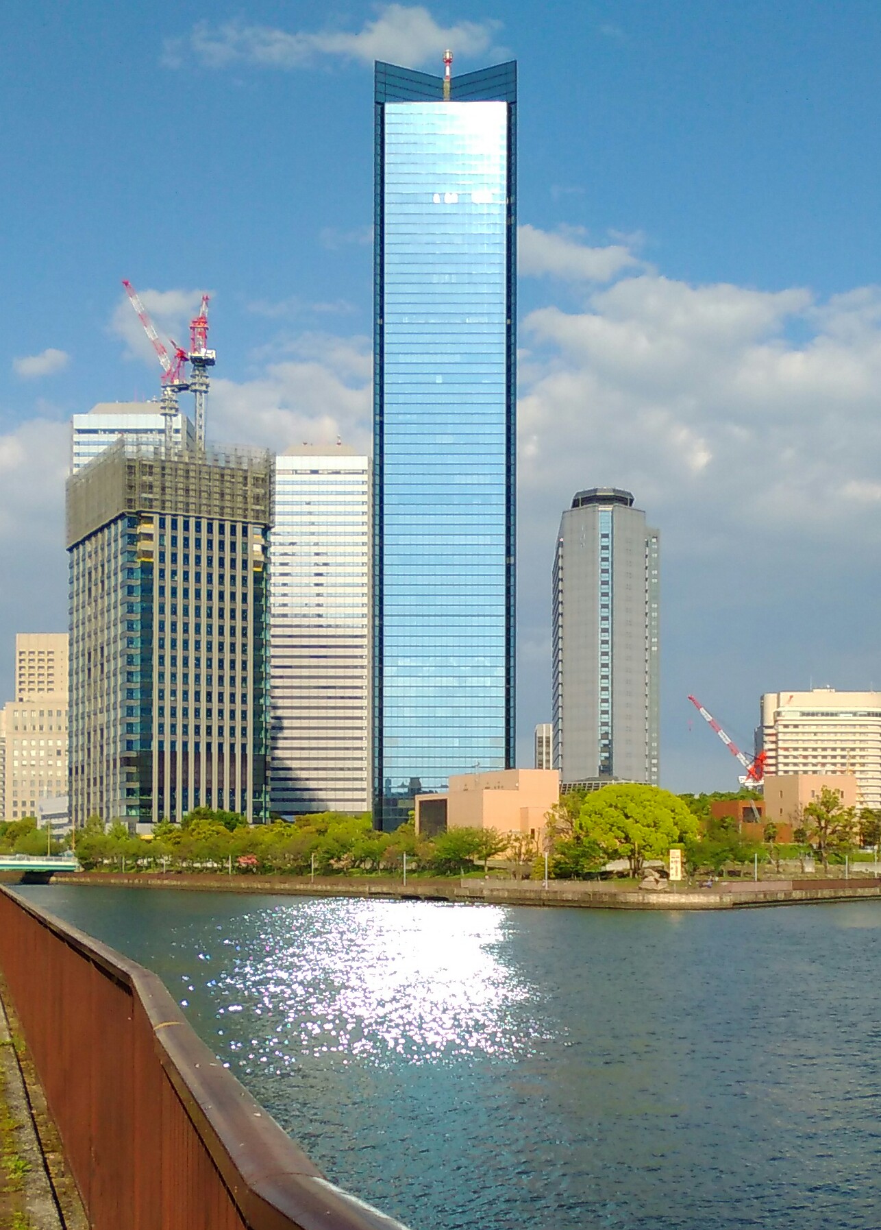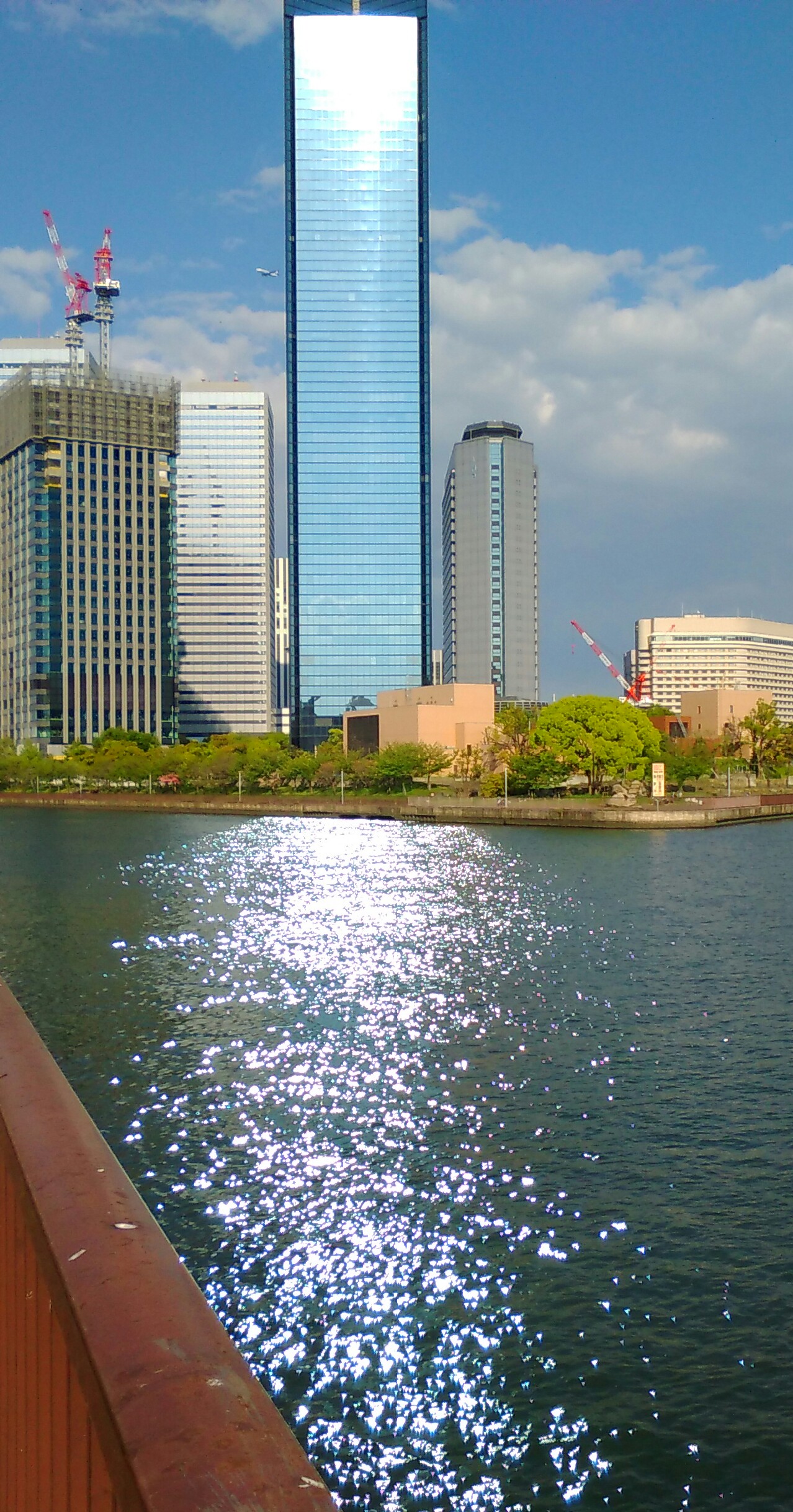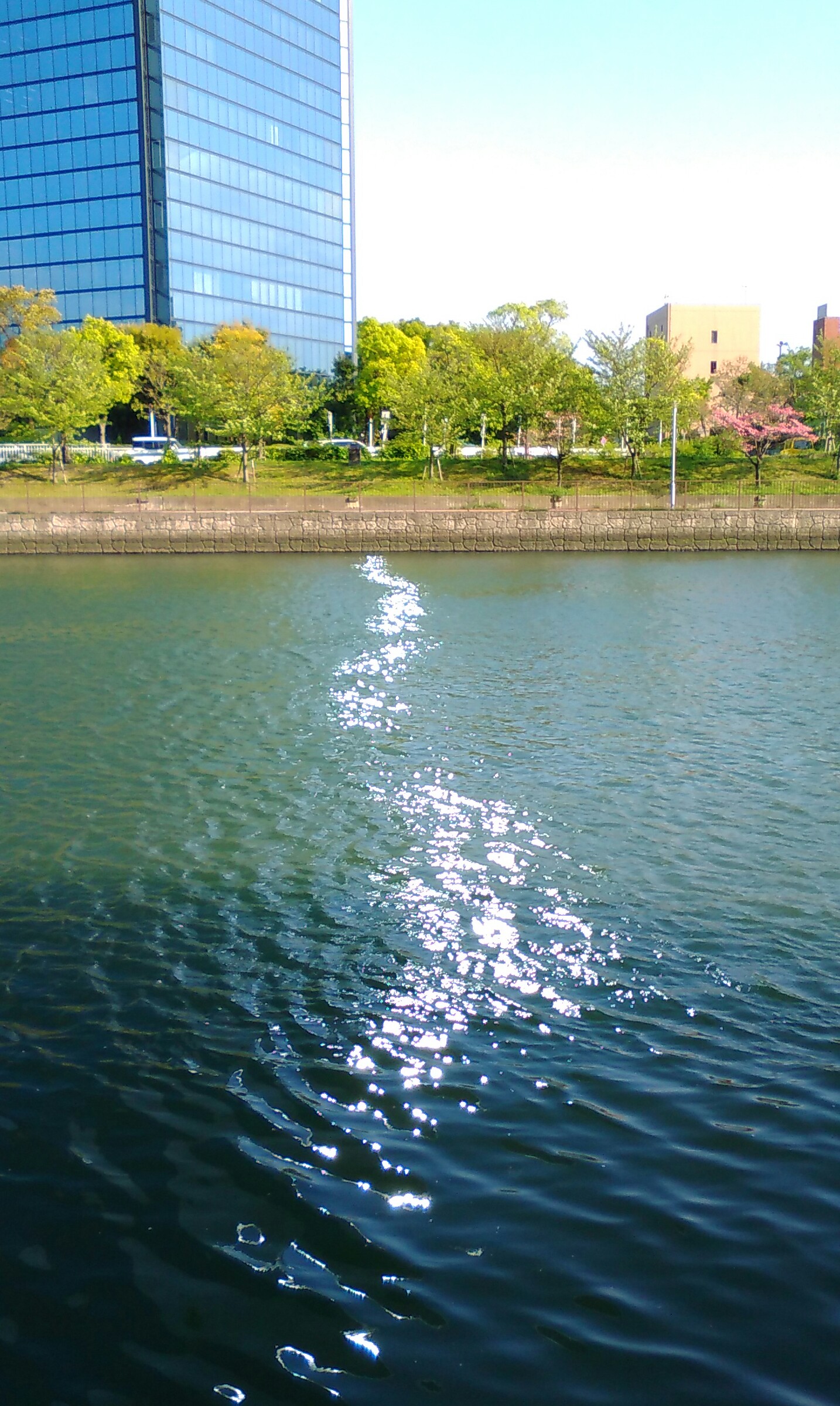 そうなんです。光る水面の向こう岸に建っていたのは大阪ビジネスパークのクリスタルビルでした。