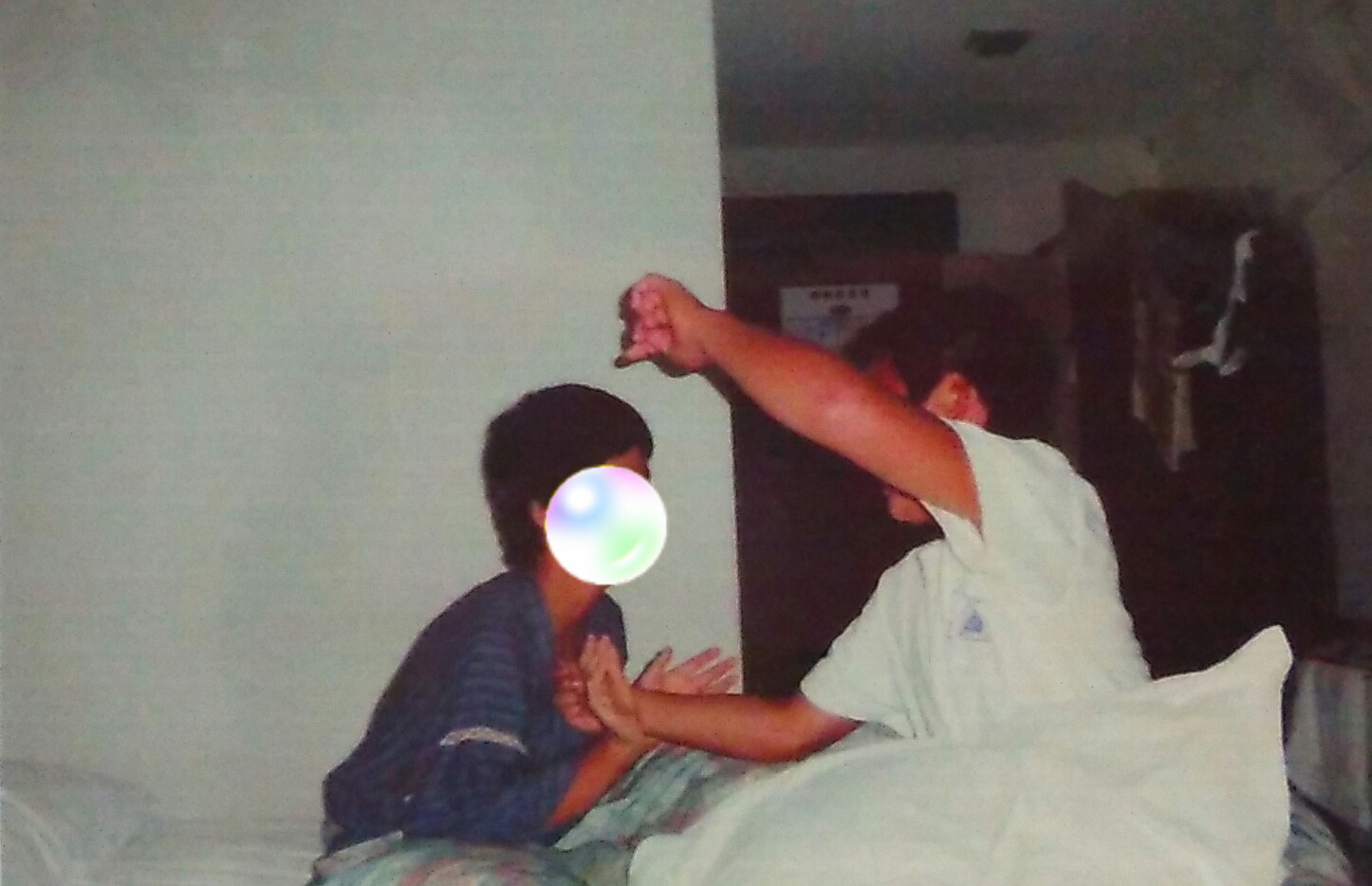 ツインルームを3人で泊まることになり、子どもたちはひとつのベッドに一緒寝。