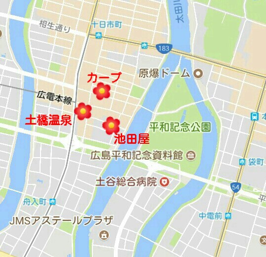 池田屋も、土橋温泉も爆心地からほどない場所です。