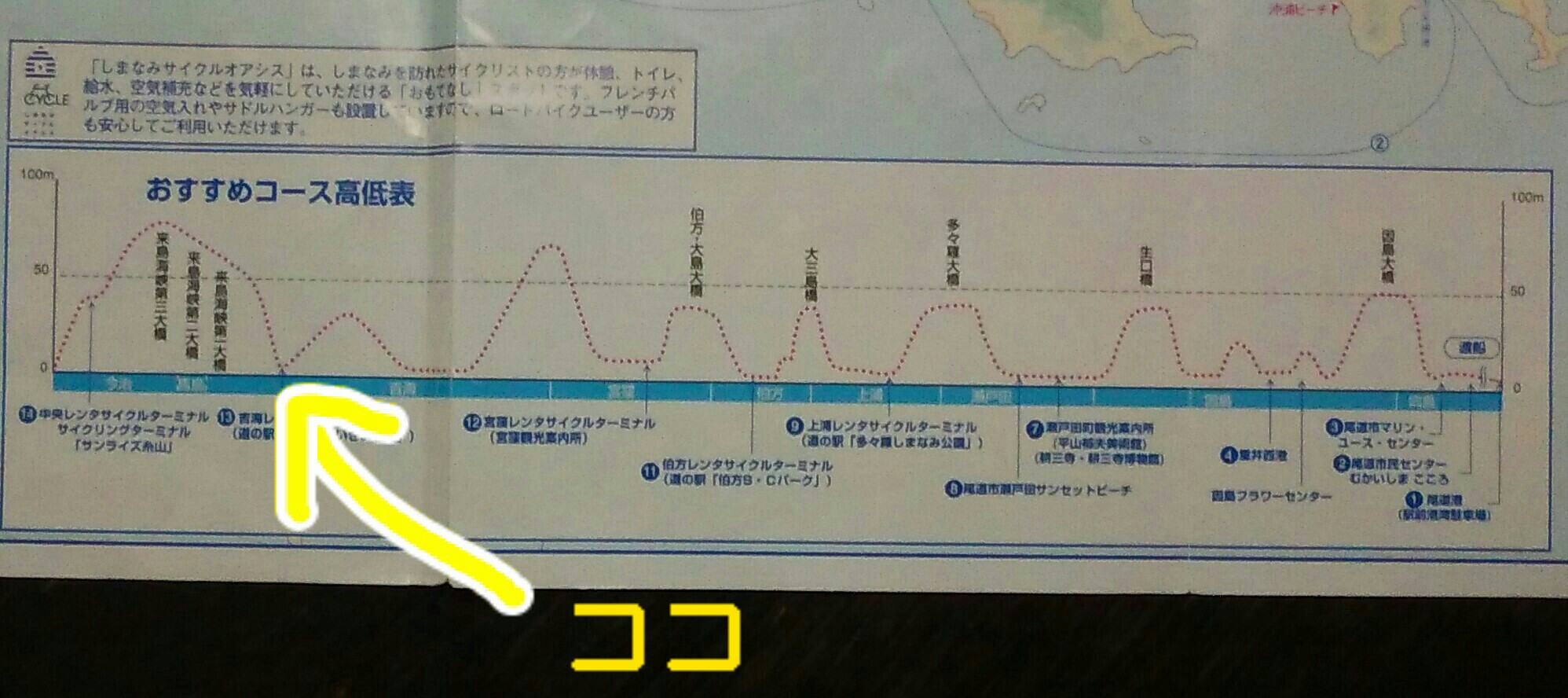 しまなみ海道のサイクルロードの中でも随一の高さです。
