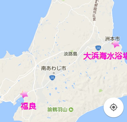 福良から洲本方面へ行くにあたり、淡路島の南の海岸76号線を走るコースと、南西から北東へ抜ける28号線を横断するコースと二通りの方法があります。