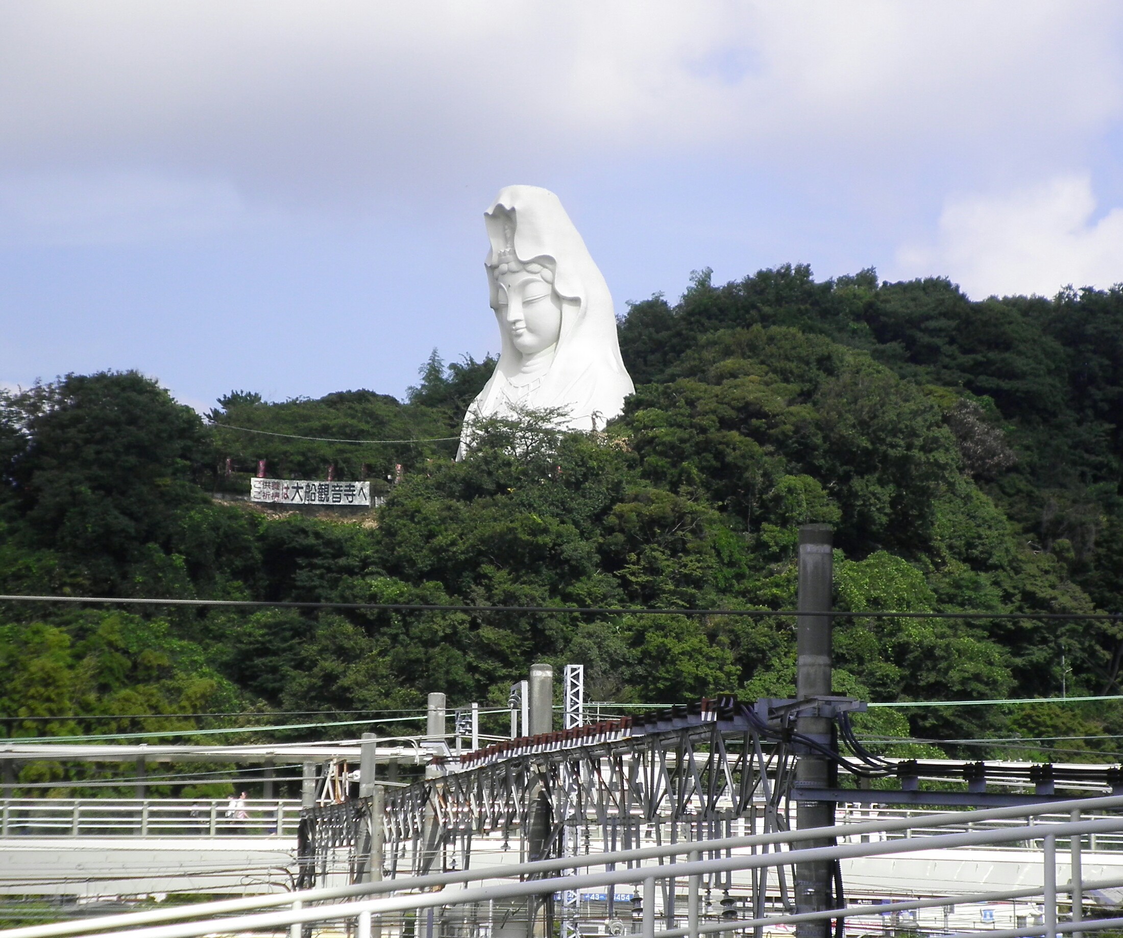 お酒は帰りに買うとして、電車に乗るため大船駅に行く途中、巨大な観音さんが。