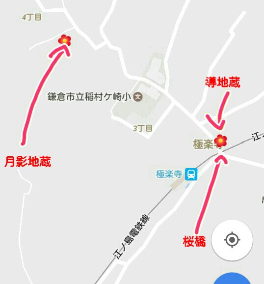 もと来た道を戻り、桜橋を渡って江の電の線路を越え海の方面へ向かいました。