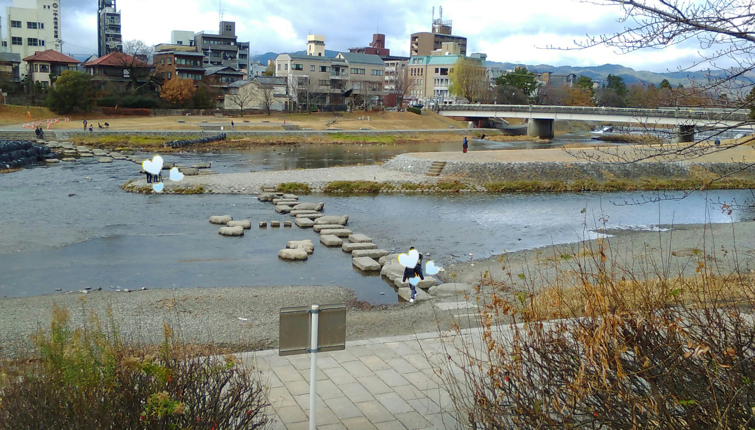 出町柳の駅は地下で、地上に上がったところには鴨川が。