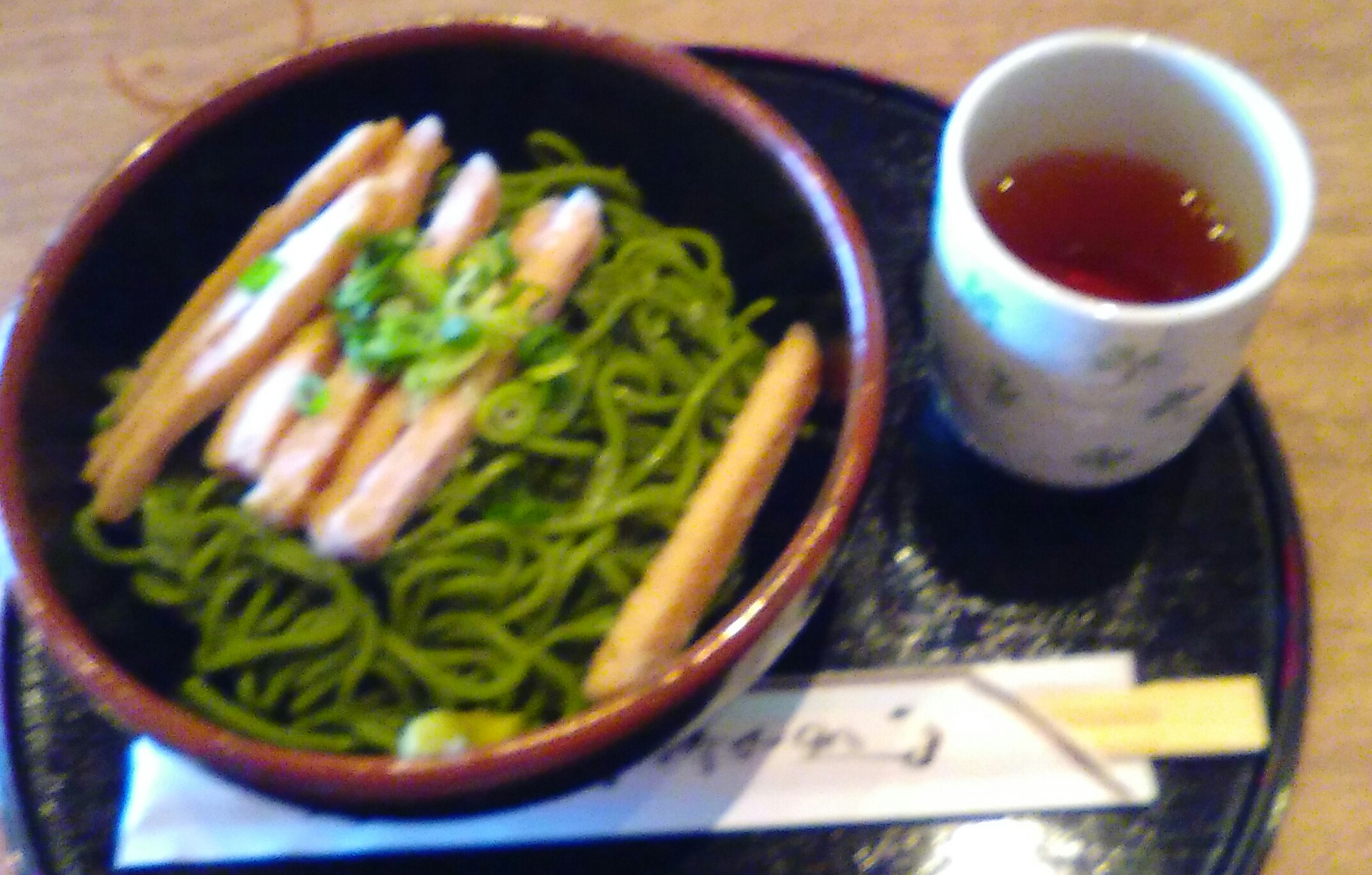 シャリシャリした食感が楽しく、お茶の香りの蕎麦との相性抜群です。