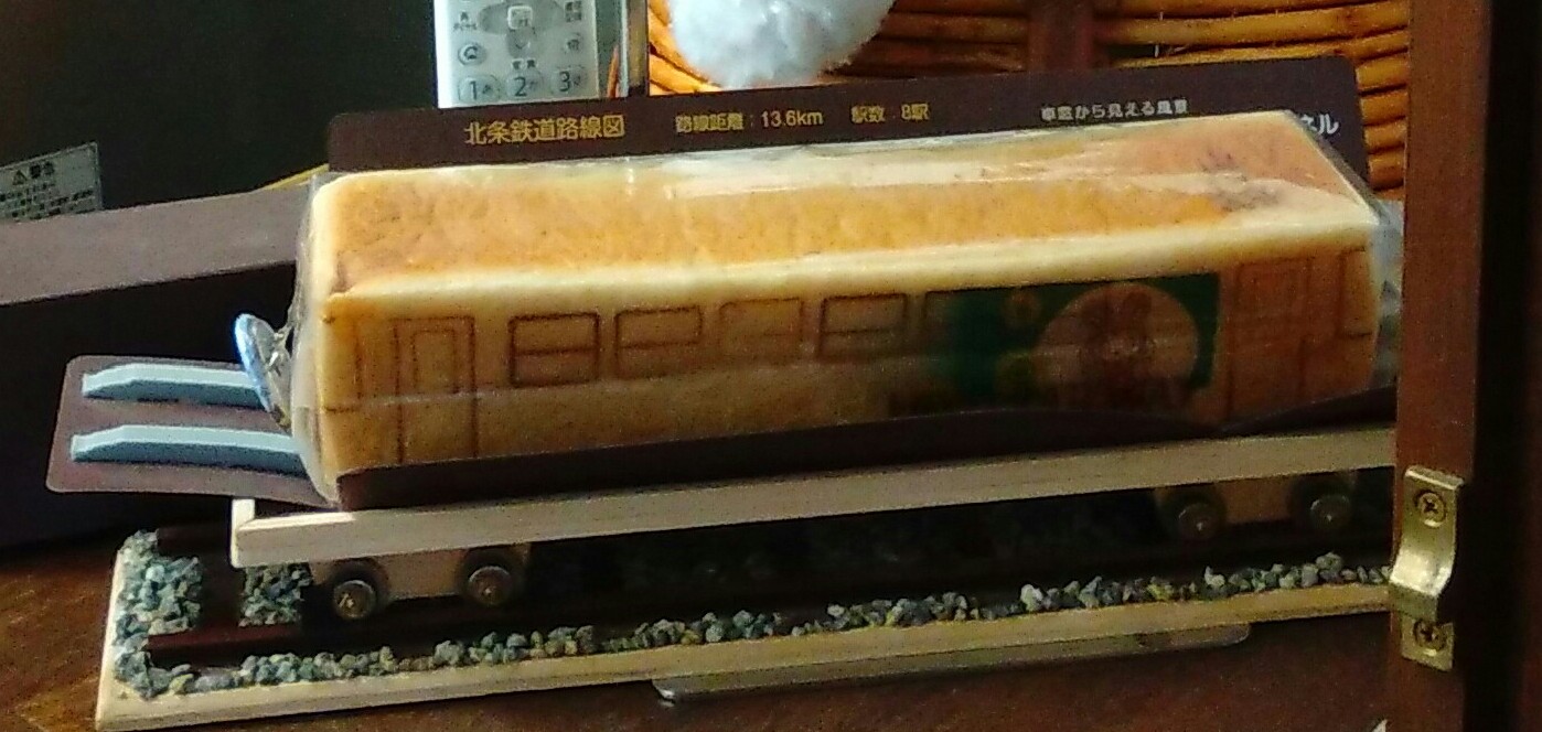 駅舎内にはパン屋さんがあり、電車をデザインした食パンなどが売られています。