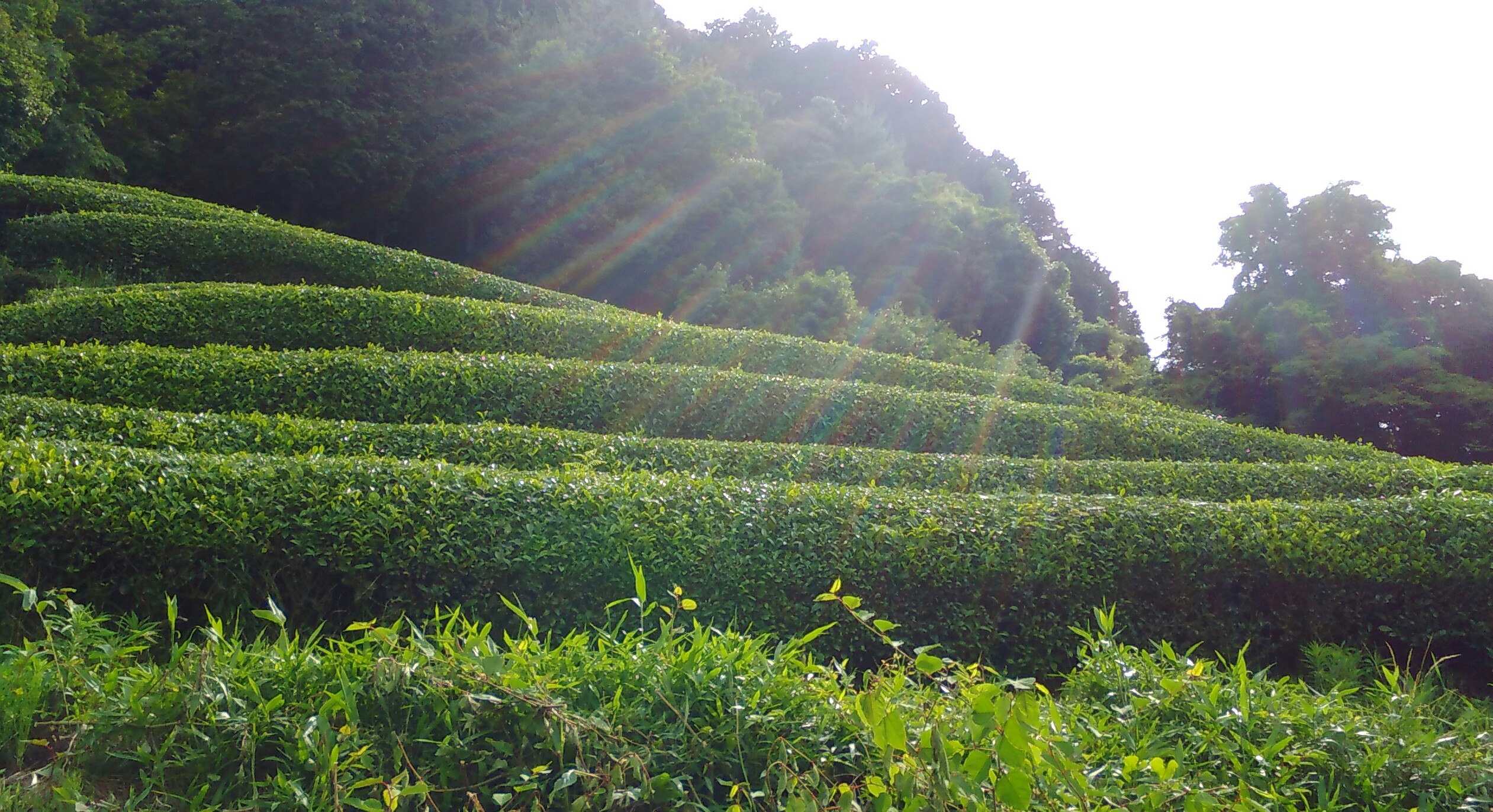 坂を登り、お茶の木と木の間に落ち着いて辺りを見渡します。