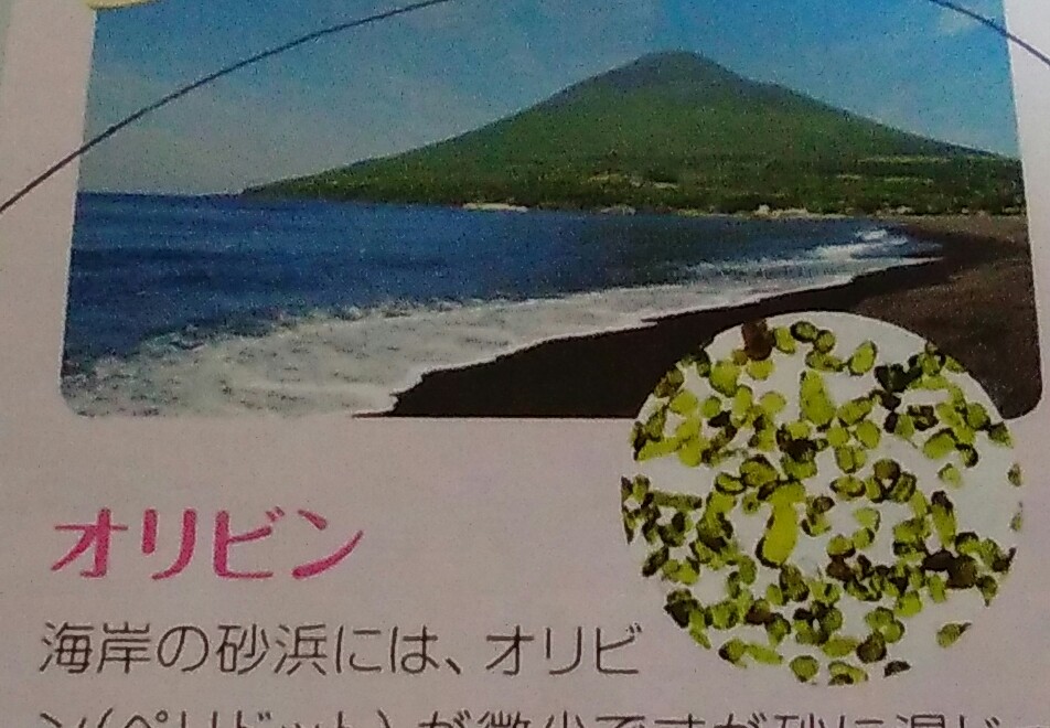 この川尻海岸の砂には、オリビン(ペリドット)が微少ですが混じっているそうなんですよ~♪