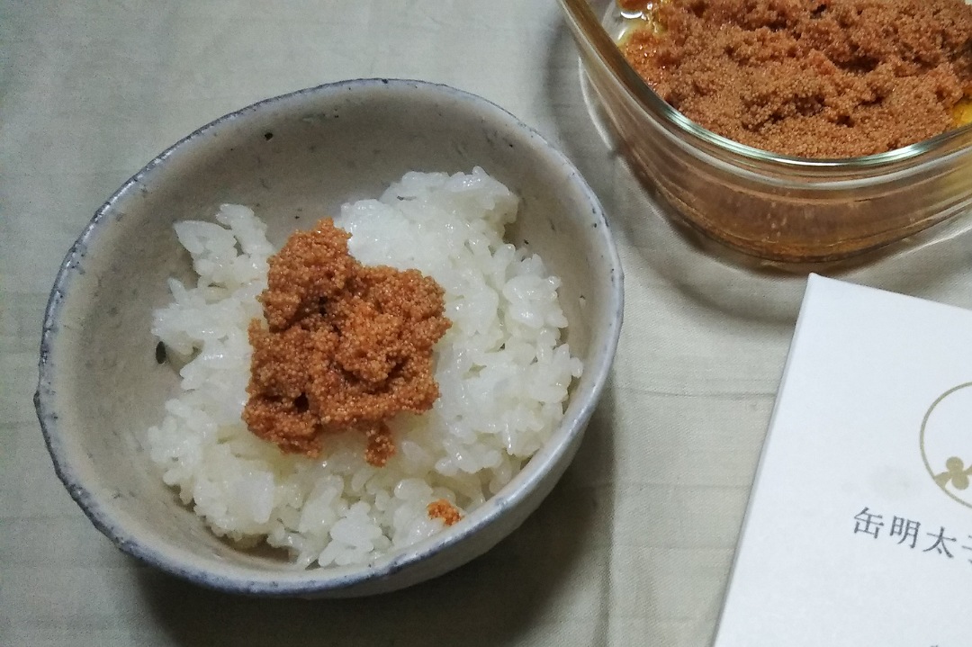 常温日持ちのする、しかもあまり加工していない明太子を探して見つけたのがこれふくやの『缶明太子』油漬けです。