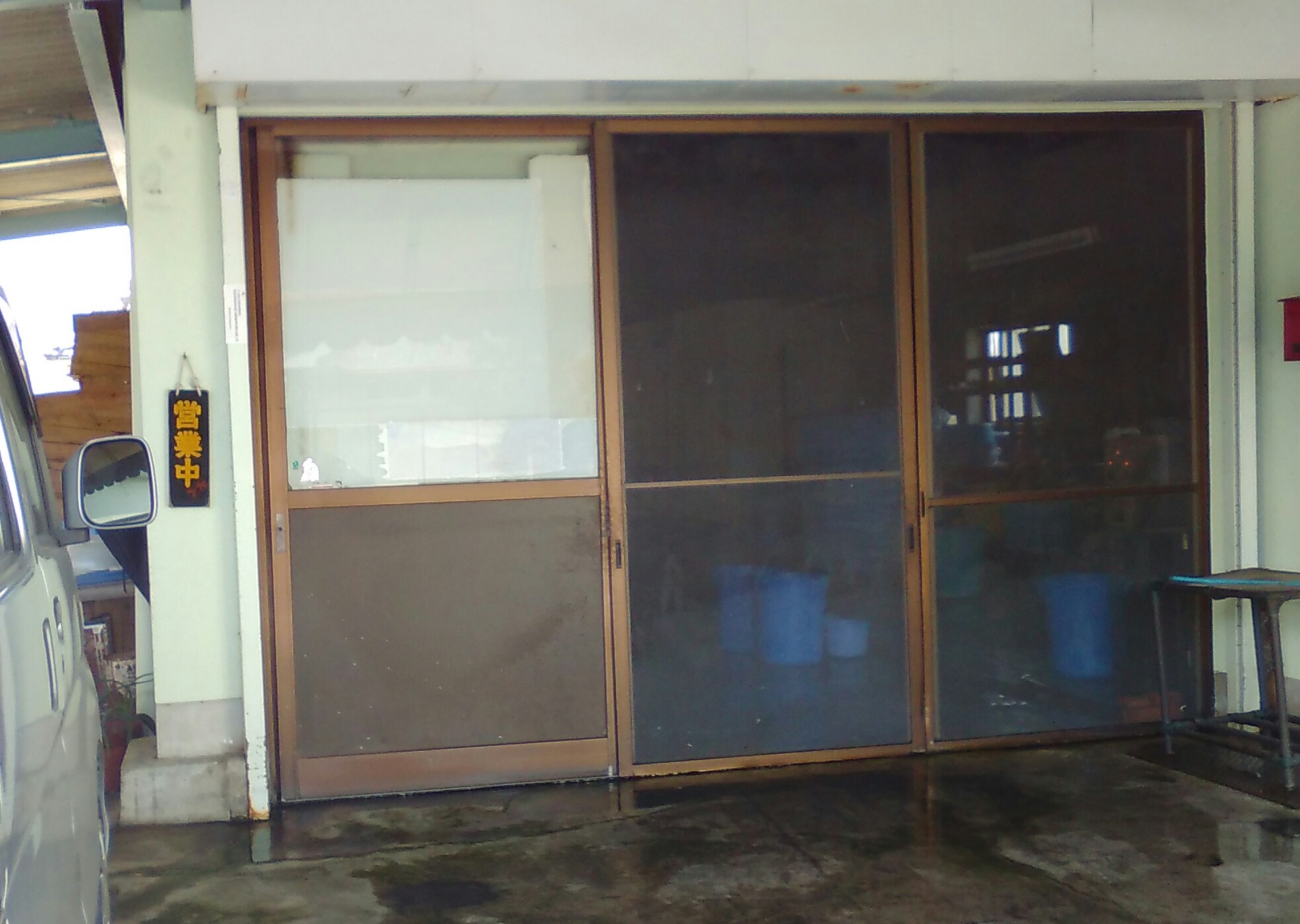 営業中って書いてあるんだけと、どうみても今日の作業を終わりかけの工場なのね。