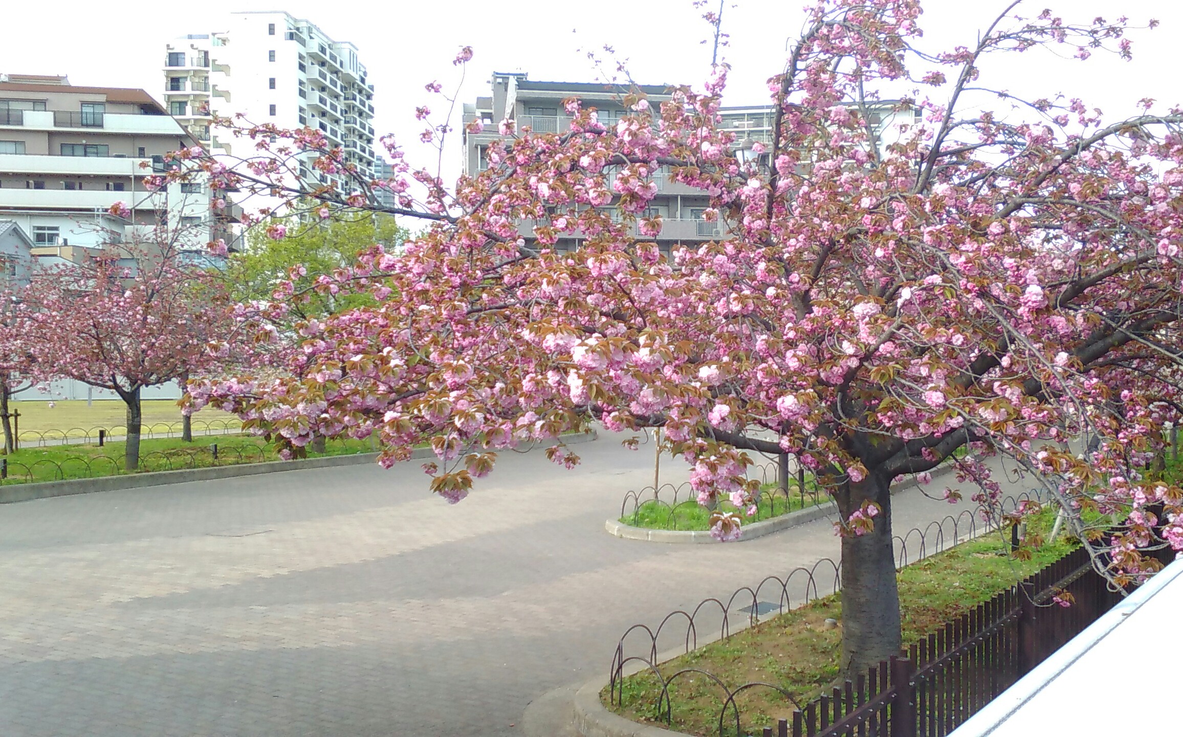 造幣局の桜は遅咲きの八重桜なので、まだ五分咲きぐらいかな?