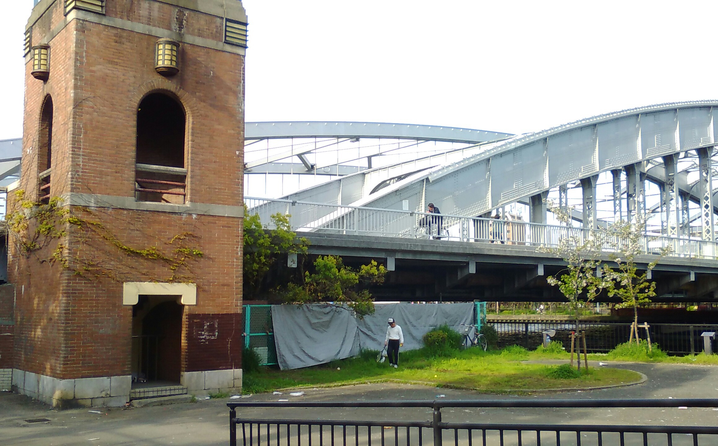 この小屋のような、塔のような形のレンガ作りの階段を上がると桜宮橋。