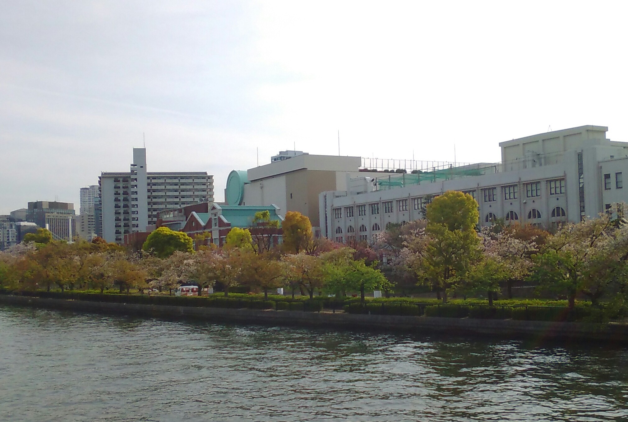後で地図で確認すると(先に確認しようよ)、造幣局の桜は河川敷に沿って咲いてるみたいです。