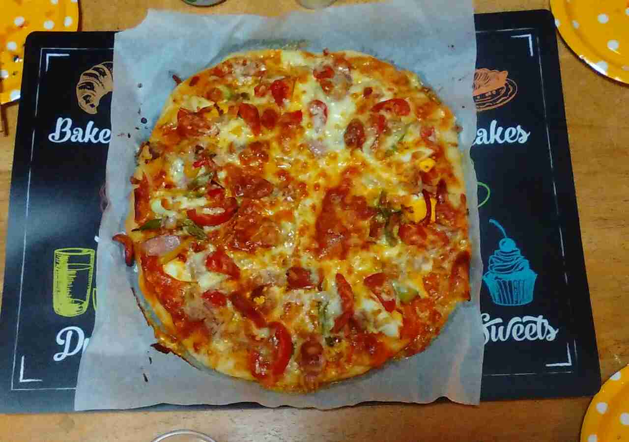 料理上手な友人の、ボリューム満点お手製ピザ。