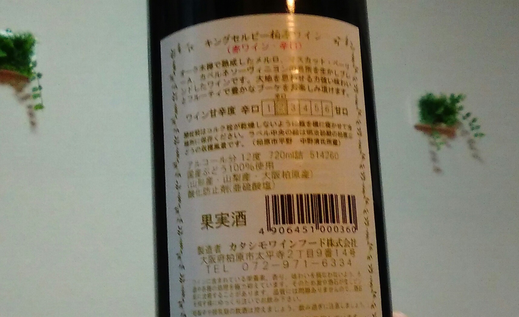 柏原ワインは、柏原市の“カタシモワインフード㈱”製で、山形・山梨・大阪柏原の葡萄で仕込まれているのだそうです。