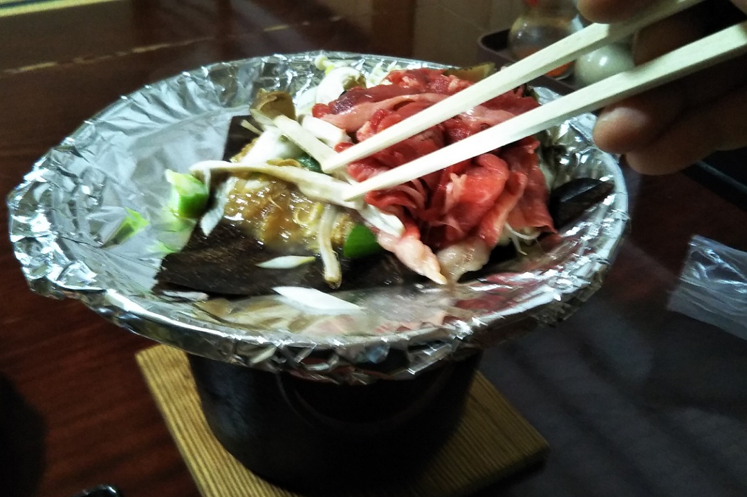こちらは牛肉を朴葉味噌で焼いた物↓↓