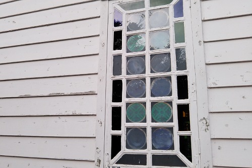 一見よくわかりませんが、窓からそっと覗いてみると、向こうの壁のステンドグラスが日を受けてキレイでした。