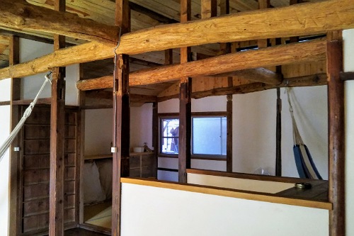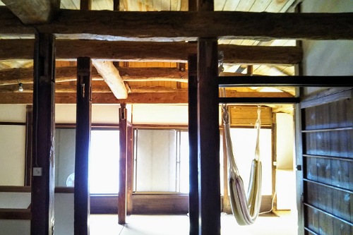 大きな梁にハンモック。