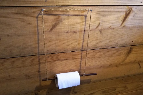 トイレットペーパーは木を麻紐で引っ掛けてます。