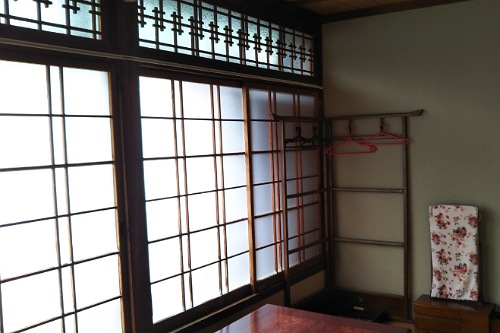 京都の五条楽園で訪れた元遊郭の建物とどことなく雰囲気も似ていたし、部屋の窓や欄間もムーディだし。