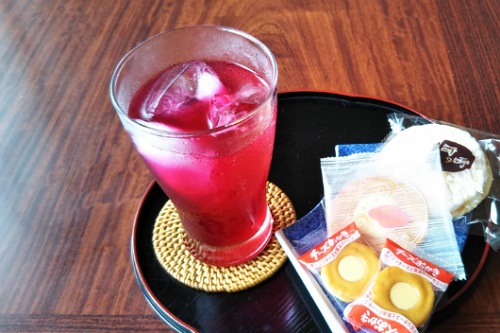 宿のお女将さんは、自家製の赤紫蘇ジュースでもてなしてくださいました。