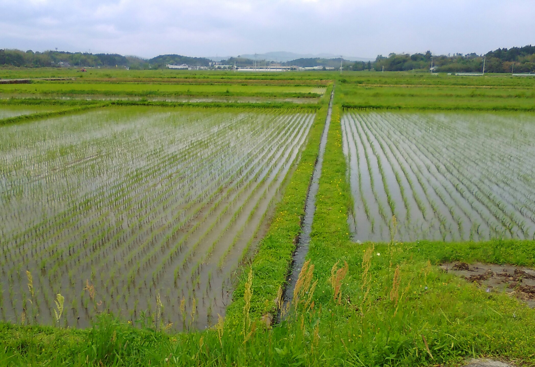 田植えが終わったばかりの水田↑↑と蓮華畑↓↓