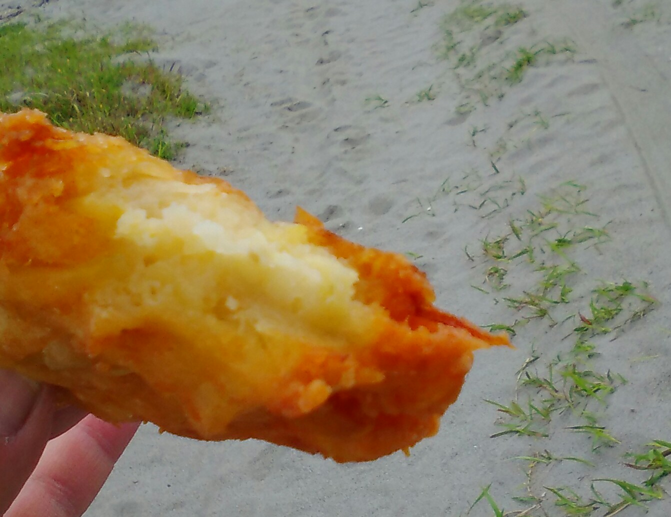 ここらへんでお腹がすいて道の駅で買った本日のランチ『こめん粉てんぷら』なるものを食べることに。