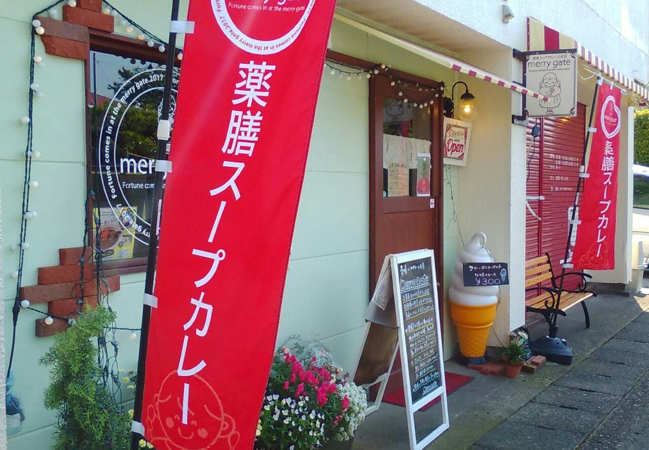 今度こそチキン南蛮を!(そんなに好きでもないとか言いながら食べそびれたチキン南蛮に未練たらたら)と思いながら走る宮崎市内で見かけた薬膳スープカレーのお店『merry gate』。