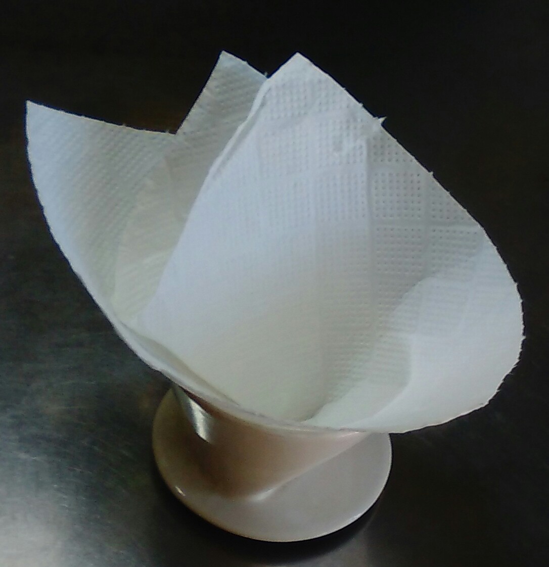 キッチンペーパーを円錐型にクルリと巻いてドリッパーにセットし、