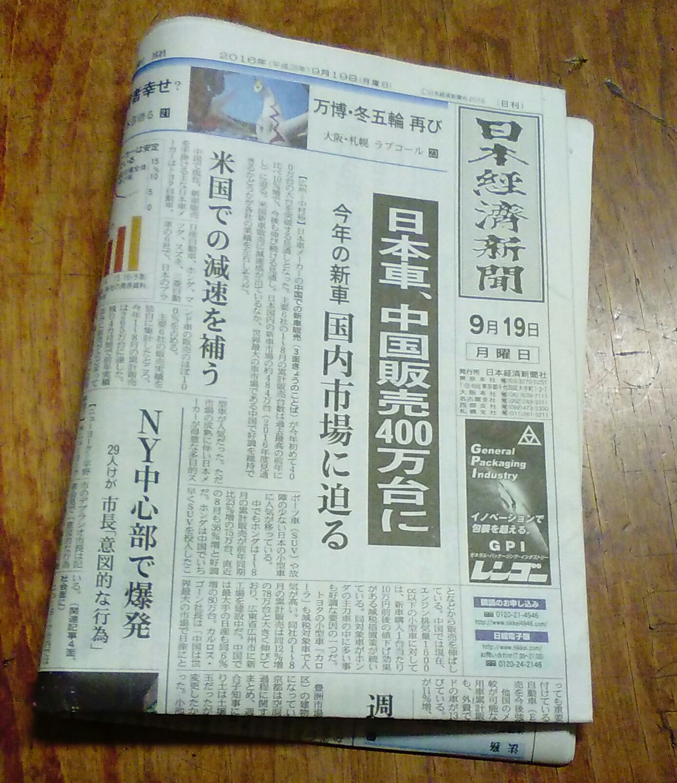 さすがに息子や自分の弁当箱を包むランチ袋として使う勇気はありませんが、最近は新聞を取らない家も多いし、将来は新聞紙が貴重品になって、新聞紙でお弁当を包むのがオシャレになる日が来るかもしれませんね~。